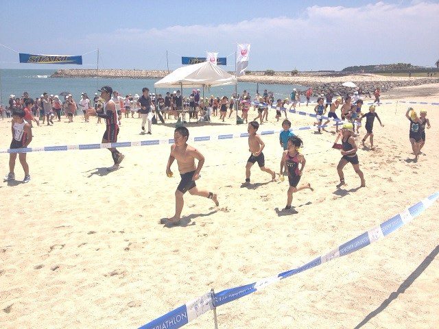 さあ、友の応援へと、そのまま浜のスイム会場に陣取ることに。